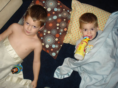 Here are the boys right before bed. Now why, may I ask you, do they not do this when I am on the phone? It's like I live with a bunch of wild men while I'm trying to talk to my sisters. I still love this though...especially because they did it all on their own:)