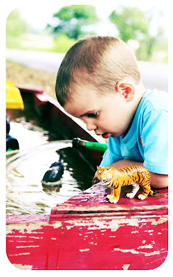 Speaking of boys....Bo is all boy. Here he is playing in our swimming pool, I mean sandbox. He really like to fill up the sandbox with water and just play in the muddy mess until all the water soaks up.