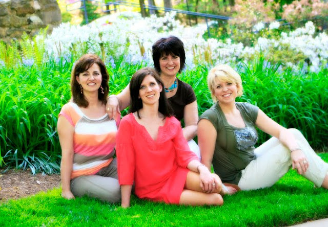 Laura is the oldest, err...eldest, in the middle with the brown shirt on. Lyn's the second in the stripes. Then our brother Jake...but no boys were allowed on our trip:) Then me, the oddball out with the blond hair. Charity is the youngest. There are a lot of years (19 from oldest to youngest) that span between us, but i wouldn't have it any other way.