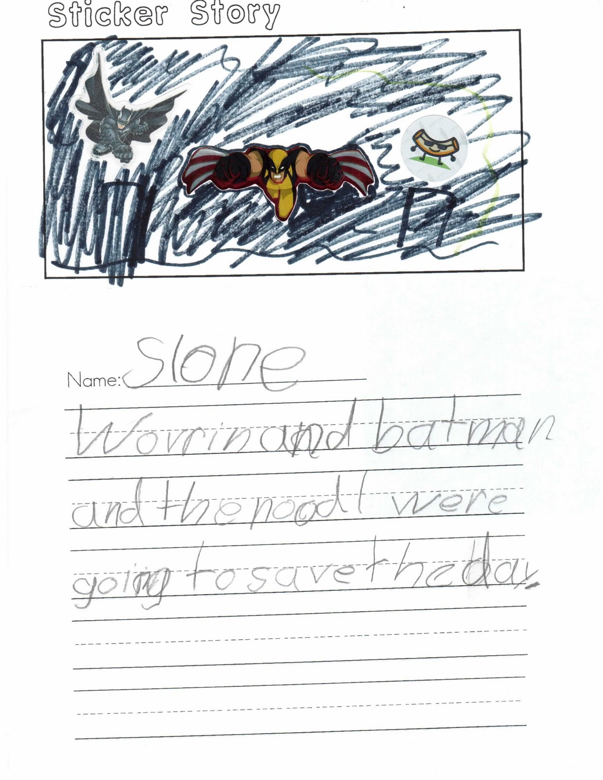 I love it when Slone brings home something he worked on at school. He loves to draw. He has a little notebook that I keep in my purse that he gets out when we are at church and restaraunts. He just draws and draws.
